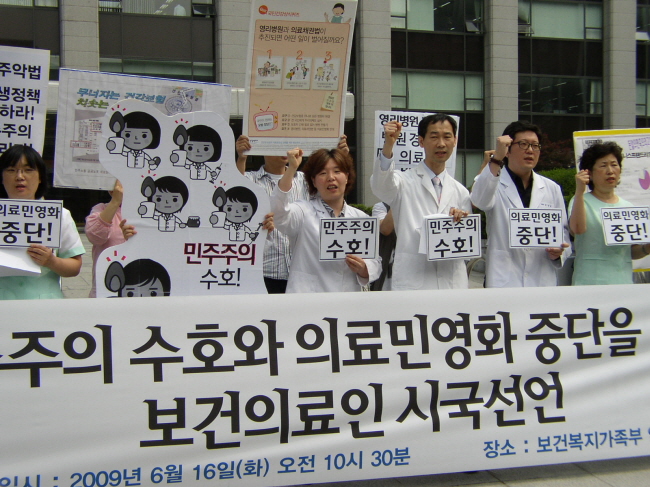 우리는 이번 진흥원과 특히 KDI의 부실한 연구보고서에 기초하여 영리병원을 추진하는 것은 사립의료기관이 90%가 넘는 한국의 보건의료제도에 재앙적 영향을 끼칠 것이라는 점을 정부당국에게 다시한번 경고한다.