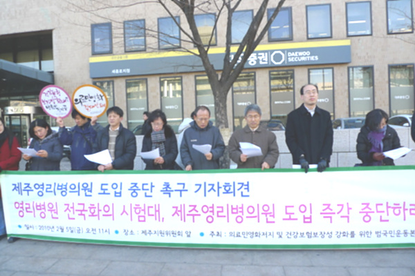 우리 의료민영화저지 범국본 소속 시민사회단체들은 제주 영리병의원 도입에 대한 저지투쟁과 입법 저지 활동을 끝까지 전개할 것이다.