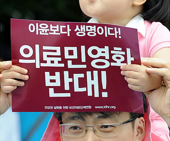 의료민영화도 본격 추진된다. 제주도 국내영리병원 허용, 병원채권조달법에 촛불때 막았던 의료민영화 조항을 다 넣은 의료법개정, 여기에 “건강에 대한 상담, 정보 제공, 교육, 점검 및 관찰”을 건강보험에서 제외해서 가격을 자유화하고 개인질병정보를 민영보험회사에 넘겨주겠다는 건강관리서비스법도 소리소문 없이 5월 17일 국회에 상정되었다. 아예 영리병원을 전국적으로 추진하겠다는 것이 “이명박 대통령의 확고한 의지”라는데 뭘 기대할 것인가.