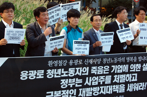 하루에 6명 1년에 2100여명이 죽어도 처벌되는 기업주는 없다. 어떤 기업주가 산재를 줄이기 위해 진정으로 노력을 하갰는가? 정부가 진정으로 문제 해결에 의지가 있다면 형식적이고 의례적인 전시 행정과 정책 추진에 그치지 말고, 실질적 정책 도입과 강력한 법 집행이 뒤따라야 한다. 그래야 이어지는 억울하고 안타까운 죽음의 행렬을 끊을 수 있다. 당장 산재사망 기업주에 대하 처벌을 강화하라. 언제까지 노동자들이 안전조치의 미비 때문에 죽어나가야만 하는가.