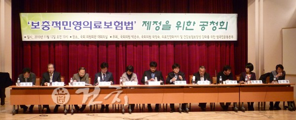 범국본은 12일 오전 10시 국회의원회관에서 ‘보충적 민영의료보험법 제정을 위한 공청회’를 개최하고 법률 제정의 필요성과 역할에 대한 다양한 논의를 진행했다. 특히 이날 공청회는 민주당과 민주노동당이 참여해 현재 진행 중인 민영의료보험관련 법안 발의 내용을 소개하기도 했다.