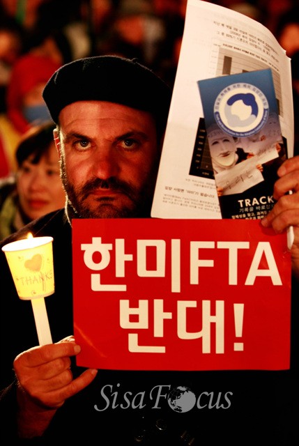 이번 방문에서 우리는, 많은 미국 정치인들이 한미 FTA가 한국인들에게 선물이자, 한미 양국관계에 도움을 줄 것이라고 믿고 있다는 사실에 매우 큰 충격을 받았습니다. 실제로 한국 국민들은 한미 FTA가 다국적 기업의 이익에 부합할 뿐, 한미 양국의 일자리와, 우리의 시민적 권리, 환경, 건강, 민주주의를 파괴할 독소 조항들로 가득해 우리의 삶을 위협할 것이라고 우려하고 있습니다.