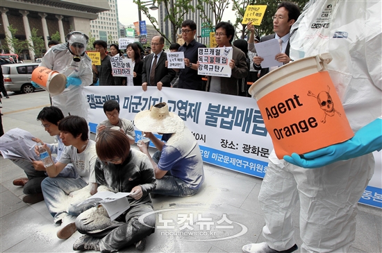 1962년부터 1971년 사이에 베트남 지역에 대략 15종의 고엽제가 살포된 바 있다. 한국에서도 고엽제가 비무장지대를 중심으로 살포된 바가 있음이 알려졌다. 베트남에서는 ‘에이전트 오렌지’라는 이름의 고엽제가 전체의 60%를 차지하였고, ‘오렌지’ 대신에 ‘블루, 퍼플, 핑크, 그린’이라는 이름을 가진 고엽제들도 있었다고 알려져 있다. 베트남에 살포된 고엽제의 양은 총 48,427톤 정도로 알려져 있는데, 성분으로 보면 ‘2,4-D(dichlorophenoxyacetic acid)’ 와 ‘2,4,5-T(trichlorophenoxyacetic acid)’가 45,437톤 정도, ‘피크로랍’과 ‘카코딜산’이 1,955톤 정도, 가장 발암성이 높은 물질로 알려져 있는 ‘다이옥신(2,3,7,8-TCDD : tetrachlorodibenzo-p-dioxin)’은 대략 167 킬로그램 정도가 포함되어 있었을 것으로 추정되고 있다. (참고 표 1,2)