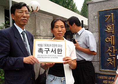 오늘(26일) 낮 12시 기획예산처 정문 앞에서 건강권실현을위한 보건의료단체연합, 민주노총, 참여연대, MD저지 공대위, 민주노동당, 통일연대평화위원회 등 8개 시민사회단체가 함께 “기획예산처는 국방비 증액요구를 단호히 거부하고, 사회복지 예산 확충하라!”는 주제로 국방비 증액 반대, 사회복지 예산 확충을 위한 집회를 가졌습니다.