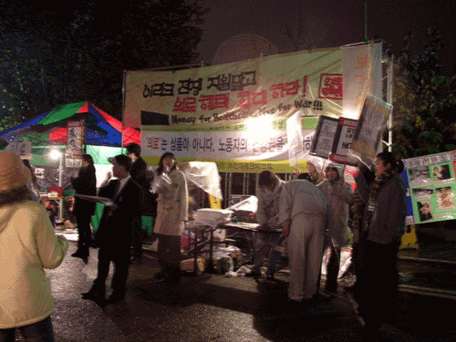 보건의료단체연합 회원들은 반전평화모임(준) 회원들과 함께 2004 노동자대회 전야제에 참석하여 “전쟁지원 할 돈으로 의료혜탹을 확대하라” 주제로 선전전을 했습니다. 선전지 완본은 자료실을 참고하세요.