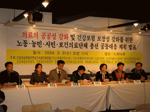 가칭) 의료연대회의(준) 의 출범과 더불어 보건의료단체연합, 건강세상네트워크, 사회보험노조, 보건의료노조 등이 총선 대응 관련 기자회견을 열였다.