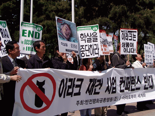 또한, 이라크를 갈기갈기 나누어 먹으려는 다국적 기업의 피의 축제에 한국 기업이 참여하는 것에 결단코 반대한다.