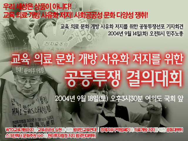 4. 참여정부는 의료보장률 80%, 공공의료비율 30% 확충공약을 준수하고 이에 정면으로 역행하는 경제자유구역내 병원의 영리법인화 허용과 의료개방조치를 즉각 철회하라