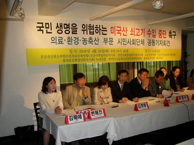 한국정부는 작년 11월 한미FTA 사전협상에서 미국산 쇠고기 수입을 약속하였고 올해 1월 미 쇠고기 수입을 결정한 바 있다. 우리는 현 시점에서 미국산 쇠고기 수입은 국민 건강과 생명을 한미FTA 협정을 위해 위험에 빠뜨리는 조치라고 판단하며 이와 관련한 시민사회단체의 입장을 다음과 같이 밝힌다.
