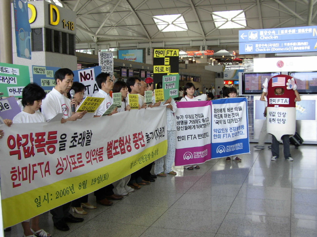우리는 묻는다. 도대체 한국정부는 왜 약가폭등으로 이어져 환자들의 생명과 국민의 건강권에 직접적으로 장애가 될 의약품 협상을 별도로 추가협상까지 하면서 추진하는 것인가? 한국정부는 사회 공공제도가 협상대상이 되는 반국민적이고 굴욕적인 한미 자유무역협정을 왜 추진하는 것인가? 한국정부는 무엇이 두려워서 한미 자유무역협정의 내용과 효과를 국민에게 숨기고 밀실협상을 고집하는 것인가?