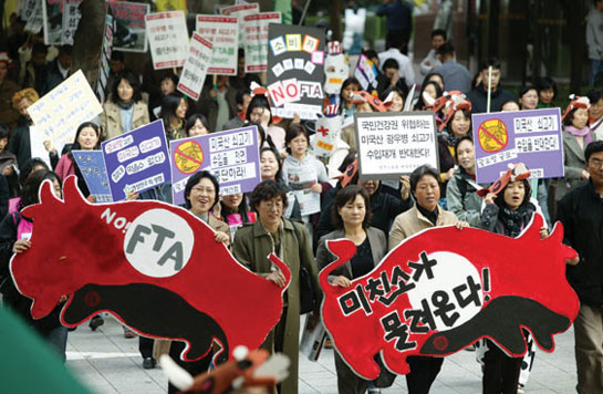 건강권실현을위한보건의료단체연합 (건강사회를위한약사회 건강사회를위한치과의사회 노동건강연대 인도주의실천의사협의회 참의료실현청년한의사회) 건강세상네트워크 국민건강을위한수의사연대 녹색연합 동물자유연대 민주노동당 에코생활협동조합 전국의료연대노동조합 축산관련단체협의회 한국생협연합회 학교급식전국네트워크 환경정의 환경운동연합 한미FTA저지농축산대책위