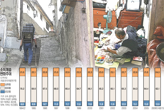 한국의 빈곤선이하 인구는 정부통계로도 700만 명이 넘지만 의료급여대상은 180만 명에 불과하다. 500만 명이 넘는 인구가 의료사각지대에 놓여있는 것이다. 이러한 상황에서 의료급여제도는 빈곤층의 마지막 비상구 역할을 하고 있고 의료비용은 상대적으로 그 상승폭이 높을 수밖에 없다.