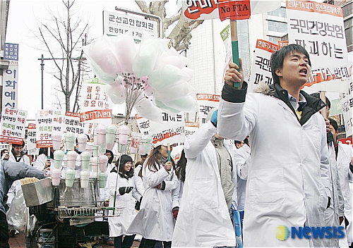 우리는 국민의 건강을 수호할 책무를 지닌 보건의료인으로서, 국민 건강권에 심각한 위해를 가져올 잘못된 한미 FTA 의약품 관련 협상에 반대하며, 이와 연관되어 의료기관의 영리화와 의료산업화 정책의 일환으로 추진되는 의료법 개정안에도 반대함을 분명히 밝힌다.