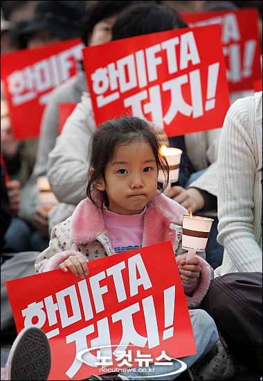 한국 정부는 오직 한미 FTA 협상 타결만이 국익이라는 말만 되풀이하면서 국민들의 의견을 무시한 채 협상을 체결했다. 광우병위험이 있는 쇠고기 수입 강요, GMO 규제 완화, 의약품 빅딜, 투자자-정부제소제도의 도입 등 한미 FTA는 대기업 자본외의 평범한 서민들에게는 재앙일 뿐이다. 이러한 재앙과도 같은 요구를 수용한 한국 정부는 자본의 요구에 따라 국민의 생명과 건강을 팔아먹은 정부라는 오명으로부터 자유로울 수 없다.