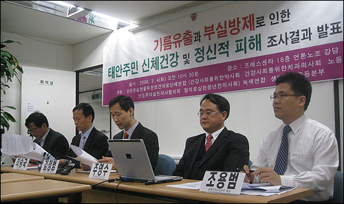 태안주민들의 기름유출사고와 이후 부실한 방제사태가 주민들에게 심각한 건강피해를 초래한 것으로 드러났다. 5개 보건의료단체로 구성된 건강권실현을 위한 보건의료단체연합, 녹색연합, 생명인권운동본부가 2월 16-17일 양일간 태안주민 325명(태안군 소원면 모항, 법산, 의항, 송현, 소근, 신덕리)을 대상으로 조사한 자료에 의하면 태안주민들이 겪고 있는 신체 및 정신건강상의 영향은 그 피해정도가 매우 심각하다.