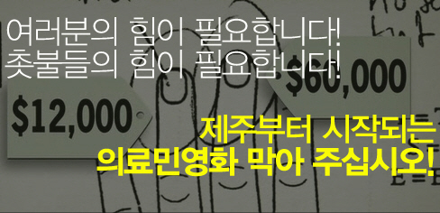 여러분, 의료민영화가 지금 제주부터 시작되려 합니다. 촛불의 힘으로 의료민영화 막아주십시오.
