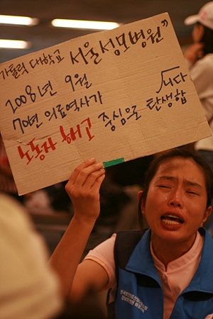 이영미 씨의 말이었다. “파견업체와 병원은 우리를 마치 사고파는 물건처럼 이리 돌리고 저리 돌리려 한다”고 절규했다. 참으려 해도 쏟아지는 눈물은 ‘물건’처럼 취급받고 있는 모멸감 탓일까.