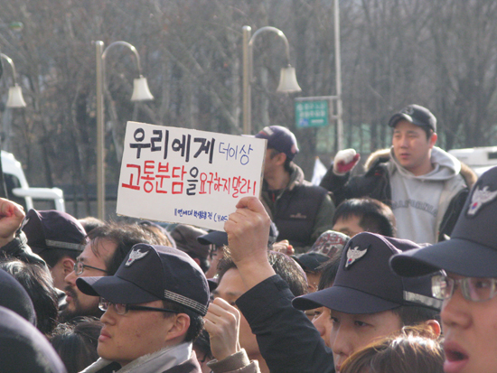 마지막으로 오늘 여야가 처리하겠다는 은행업법 개정안은 은행의 공적규제를 강화하기는커녕 금산분리까지도 완화하여 국내외 대기업에게 은행까지도 넘겨주어 그들의 사금고를 만들어 주겠다는 법안이다. 또 출자총액제 완화도 마찬가지로 재벌들의 한국사회에 대한 독점적 지배력을 더욱 키워주겠다는 법안이며 이들에게 현재 경제위기의 책임을 묻기는커녕 경제위기의 책임을 대다수 평범한 서민들에게 전가할 수 있도록 하는 MB악법의 대표격인 법안이다.