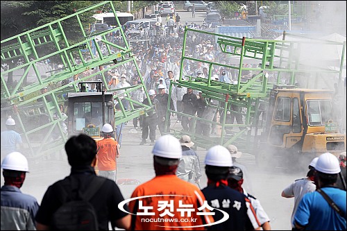 경찰은 사측이 동원한 ‘용역깡패’들이 공장진입을 한 당일에도 “우리는 사원들끼리의 충돌을 막기 위해서 온 것이다”라고 밝혔지만 사측의 용역깡패들의 공장진입은 자유롭게 허용하고 연대하러 온 노동자와 시민들의 집회는 강제해산과 연행을 서슴치 않는 행태를 보여주었고 인도주의적 진료마저 막았다. 용역깡패를 보호하면서 자신의 책임을 회피하는 것이 정부가 할 일이란 말인가?