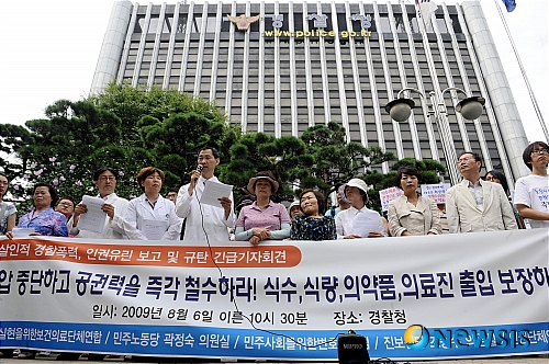 현재 쌍용자동차에서 행해지는 경찰폭력은 노동자들의 생명을 심각하게 위협하고 있다. 단 몇 시간 만에 수십 명의 노동자가 부상당하고 옥상에서 떨어져 척추 뼈가 부러졌다. 경찰의 태도는 노동자가 죽든 말든 점거만 풀면 된다는 식이었다. 쌍용차 노동자도 이 나라 국민이다. 그렇기 때문에 우리는 국민의 생명을 지켜야 하는 경찰당국에 다시 촉구한다.