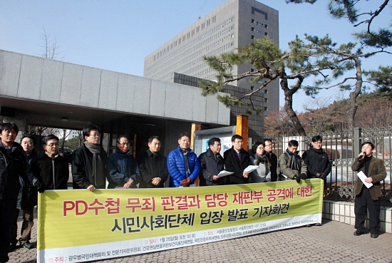 우리는 다시한번 이번 PD수첩에 대한 무죄판결이 과학적이고 상식적인 판단의 귀결이라는 점을 밝히고자 한다. 언론의 자유와 과학적 판단이 재판정에서 논의되는 것 자체가 이명박 정권의 촛불공포증과 민주주의 탄압, 그리고 이로부터 비롯된 검찰의 무리한 기소로 초래된 불행한 사태다. 이러한 언론탄압행위 자체가 즉시 중단되어야 한다. 그런데 이제 검찰과 한나라당, 일부언론은 이것으로도 모자라 스스로의 주장을 정당화하고자 민주주의 기본적 원칙까지 거스르며 사법부를 협박하고 판사개인에게 물리적 공격을 선동하며 공공연하게 3권분립을 거스르며 국가기구를 이념 재단에 의해 물갈이하자고 주장하고 있다. 국민들이 참는데도 한계가 있다.