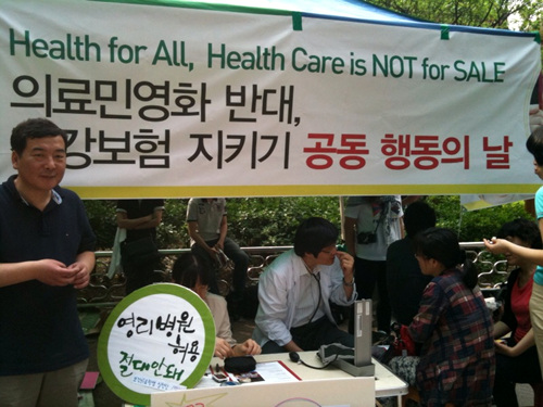 천안함사태와 지자체 선거로 우리 사회가 어수선한 틈을 타 지난 5월 17일 국회 보건복지위 위원장인 변웅전 의원을 비롯한 11명의 국회의원이 건강관리서비스 입법안을 발의했다. 이 법안의 내용은 치료행위를 제외한 나머지 모든 의료행위에 대해 건강보험적용을 배제할 수 있는 것이다. 혈압을 재고 건강상담을 받는 것을 건강보험을 적용하지 말고 따로 돈을 내게 만들자는 법안이다. 또한 민영보험회사가 국민들의 건강정보를 관리할 수 있게 하는 법안이다.