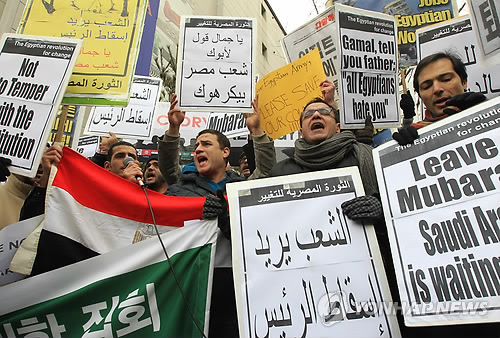 우리는 민주주의와 자유를 바라는 이집트 민중을 잔인하게 살해하는 무바라크 정부를 강력히 규탄한다. 무바라크는 저항하는 민중에 대한 탄압을 중단하고 당장 퇴진해야 한다.