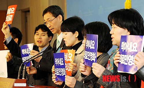 이명박 정부는 제주도와 경제자유구역 등에서 영리병원을 허용하고, 건강관리서비스를 영리기업에게 넘겨 상업화하려 한 바 있다. 또한 국민건강보험공단의 개인건강정보를 민영보험회사에 넘겨주려 하였고, 의료기관의 영리형 부대사업을 허용하여 비영리병원의 영리화를 촉진하려 하였다. 이러한 시도는 현재도 계속되고 있다. 우리는 의료민영화에 대해 앞장서온 국회의원들을 낙선운동 대상자로 선정 발표하는 기자회견을 시작으로 의료민영화 추진론자들은 국민을 대변하는 국회의원이 될 자격이 없음을 알리는 운동을 전개할 것을 밝혀 둔다. (끝)