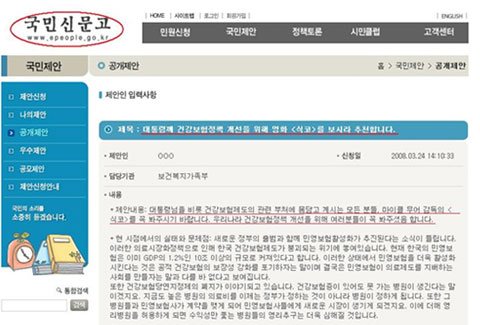 영화 국내 배급사 스폰지은 국민이 정부정책 또는 행정제도 운영의 개선을 목적으로 행정기관의 장에게 의견을 제출할 수 있는 국정참여 공간인 ‘국민신문고’의 공개제안란에 ‘식코’를 대통령에게 추천하는 글이 게재됐다고 밝혔다.