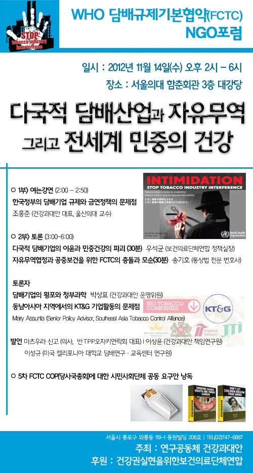 자유무역협정과 공중보건을 위한 FCTC의 충돌과 모순(30분)