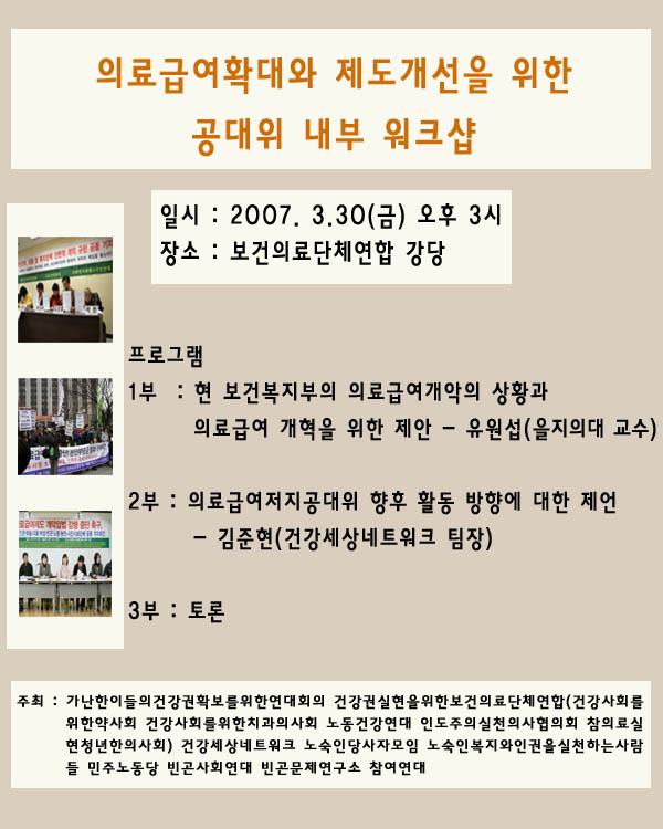 의료급여확대와 제도개선을 위한 공대위 내부 워크샵