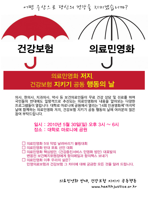 의료민영화 저지, 건강보험 지키기 공동 행동의 날! 당신은 어느 우산을 쓰시겠습니까?