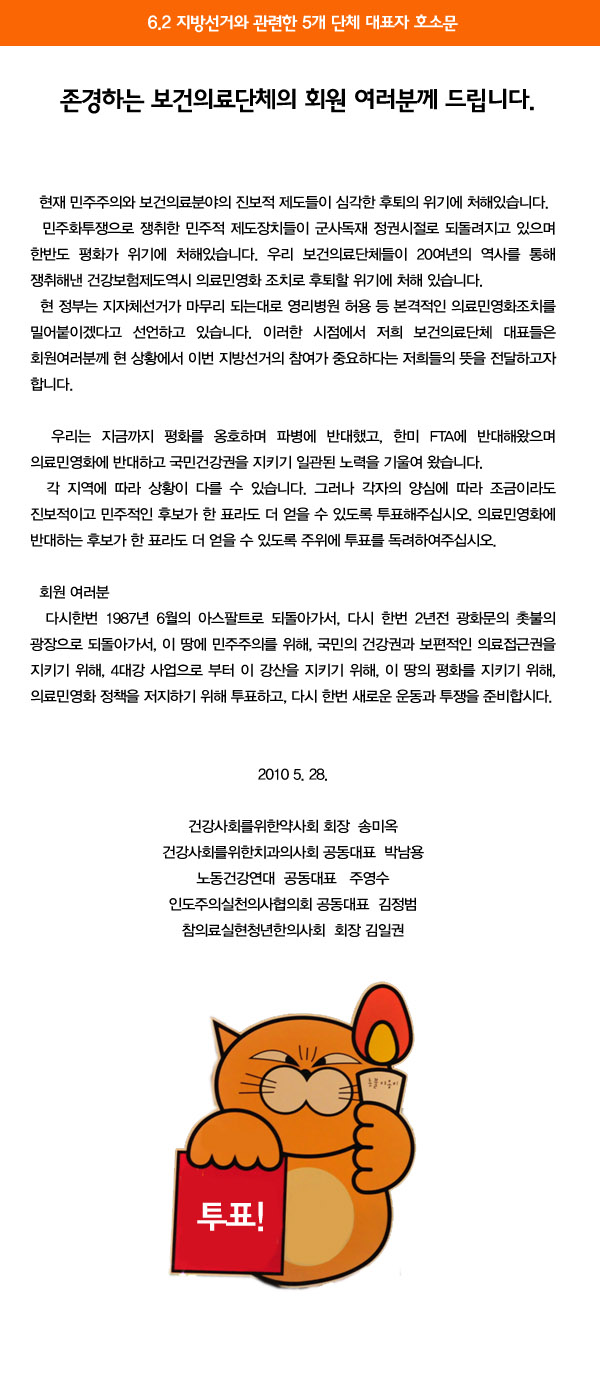 보건의료단체연합 회원께 드리는 5개 단체 대표자 공동호소문