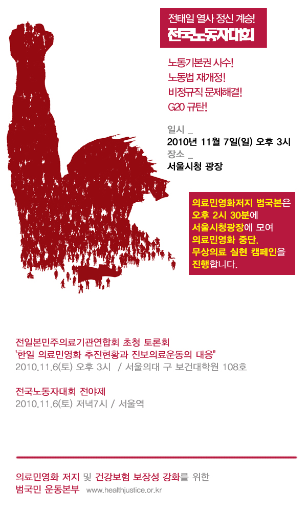 전국노동자대회, 의료민영화 중단과 무상의료실현을 위한 캠페인 알림