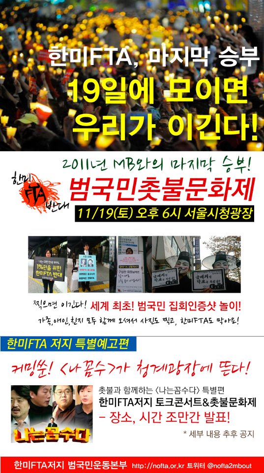 한미FTA 마지막 승부수, 19일 모이면 이깁니다!!