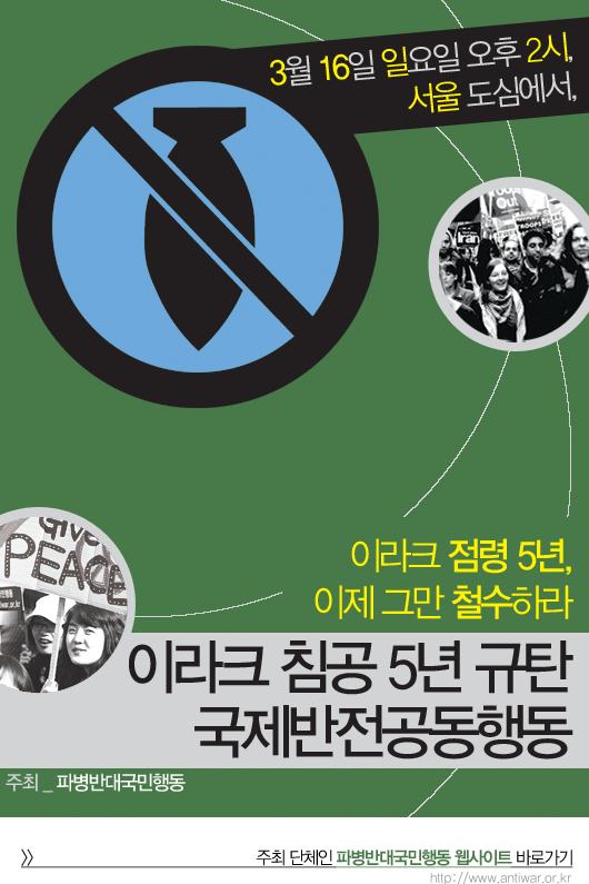 그래서 우리는 이라크 침공일을 “이란 공격 반대와 이라크/아프가니스탄 철수”를 요구하는 국제 행동의 날이 되길 호소한다. 그리고 모든 국가의 반전 운동이 대중 항의와 시위를 그 날 조직할 것을 호소한다.