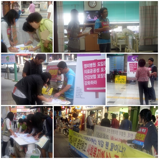 공공노조 의료연대분과는 이러한 사실들을 국민들에게 알려내고, 의료민영화법이 하반기 정기국회에서 통과되는 것을 저지하기위해, 지난 8월말 제주를 시작으로 전국순회 선전 및 전 국민 서명운동을 진행하고 있다.