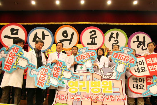 우리는 이 자리에서 무상의료는 시대적 가치이며 더 이상 미룰 수 없는 국민들의 요구임을 다시한번 확인한다.