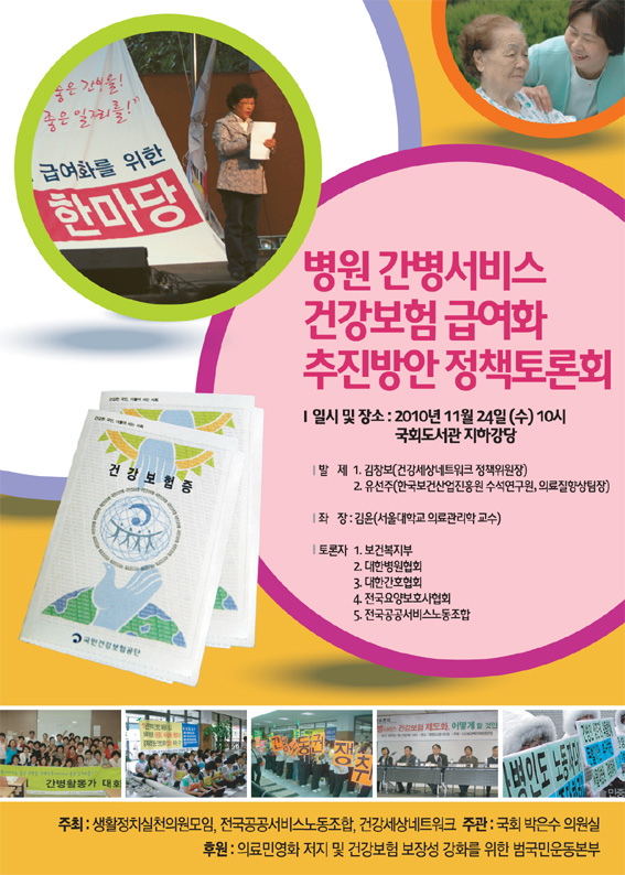 상황이 이렇게 심각하기 때문에 건강보험 정책에 아무 관심이 없는 이명박 정부의 국민건강보험공단조차도 병원 간병비를 전면적으로 급여화하기는 어렵더라도 단계적으로 급여화해야 한다는 입장을 밝혔다.