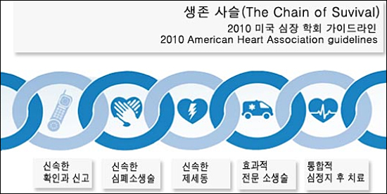 | ▲ 미국심장학회 생존사슬 가이드라인(2010) | |
